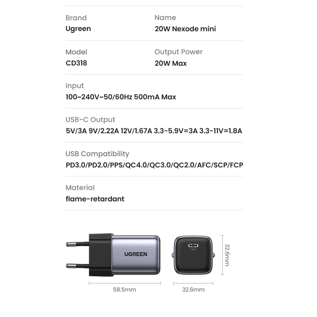 Kepala Charger UGREEN For iPhone 11 12 13 14 15 Pro Max PD Type C FAST Charging 20w 30w