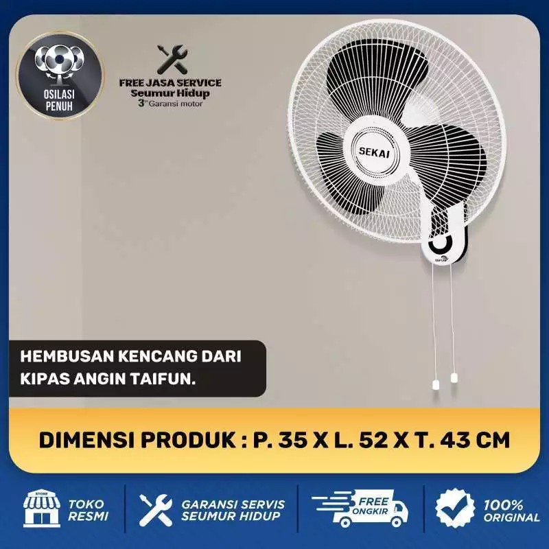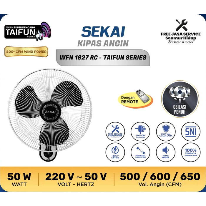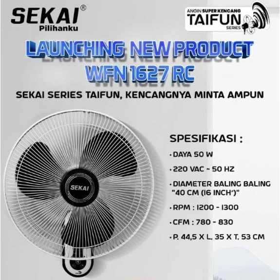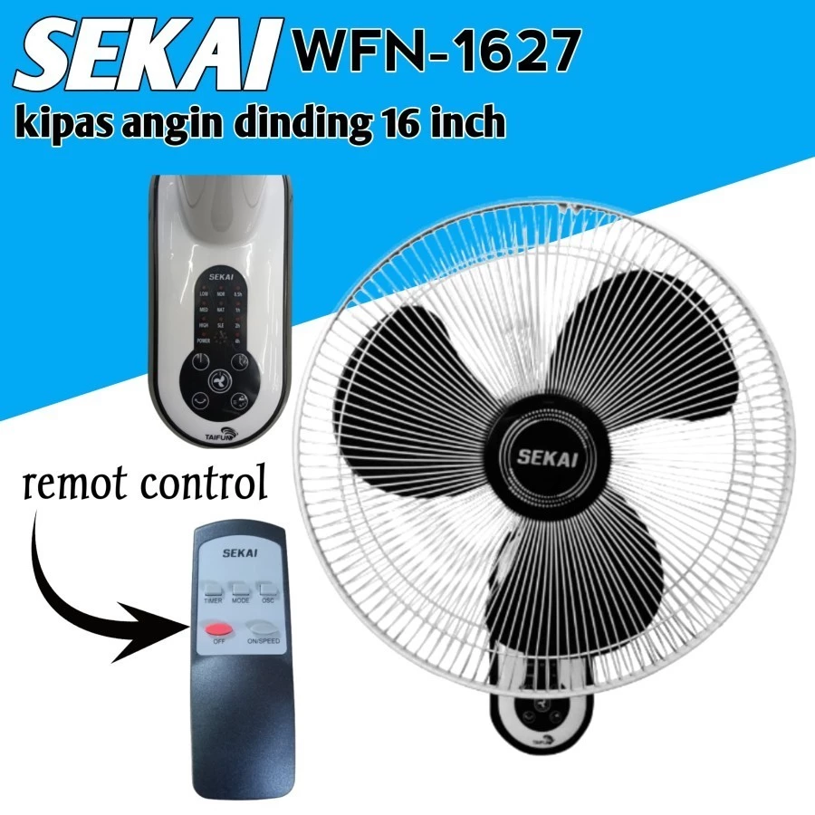 SEKAI Kipas Angin Dinding / Wall Fan Tornado 16 Inch Remote Control - WFN 1627 RC GARANSI RESMI