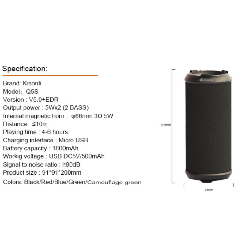 Official Storeš„ Speaker Bluetooth Wireless Portable Kisonli Q5S Dual Bass dengan Kartu TF dan Bluetooth Tws