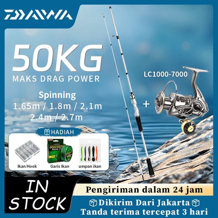 JORAN PANCING FULL SET DAIWA 1.65-2.7M FISHING ROD WITH 5.2:1 REEL COMBO FOR BASS WITH LURE HOOK FISHING TACKLE SETELAN