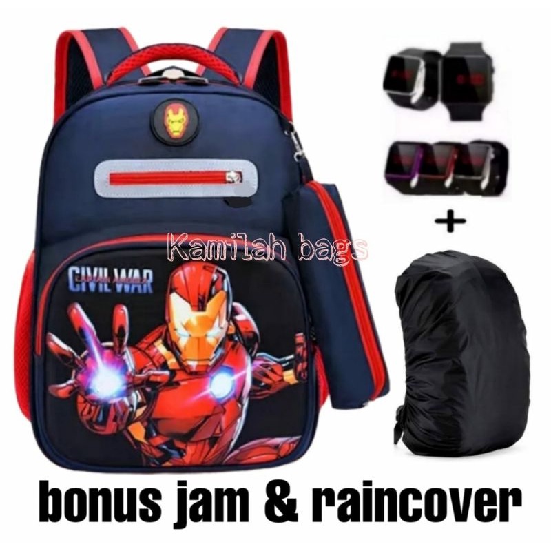 TAS SEKOLAH ANAK LAKI LAKI TAS RANSEL ANAK LAKI BONUS RAINCOVER & JAM LED TAS SEKOLAH SD TERBARU 2025