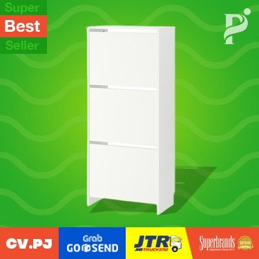 Terlaris MUST HAVE IKEA BISSA BS2261 Kabinet Ppenyimpanan sepatu dengan 3 kompartemen putih Keren