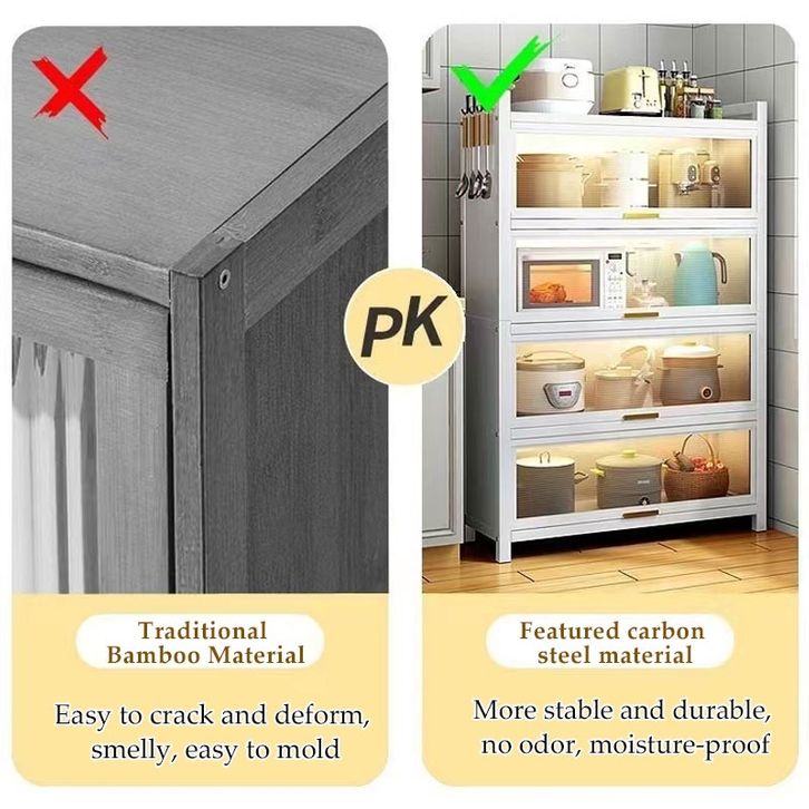 Murah Rak Dapur Lemari Piring Multi-Layer Lemari Dapur Berdiri di Lantai dengan Rak Penyimpanan Kabinet Pintu Rak Oven