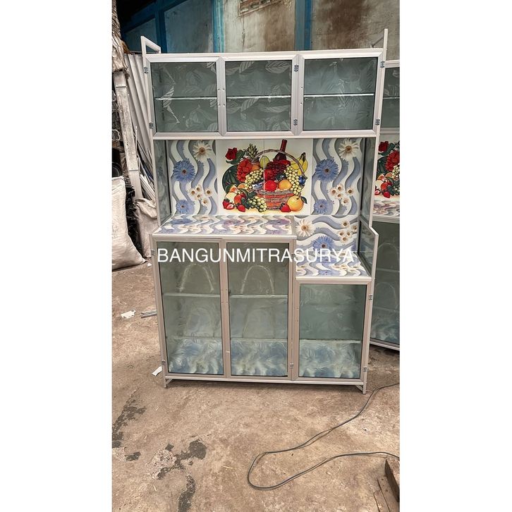 Murah Rak Piring Ekonomi Aluminium Kaca Keramik 3 Pintu MC CA Aluminium Magicom Mejikom Lemari Piring Keramik Bawah Jab