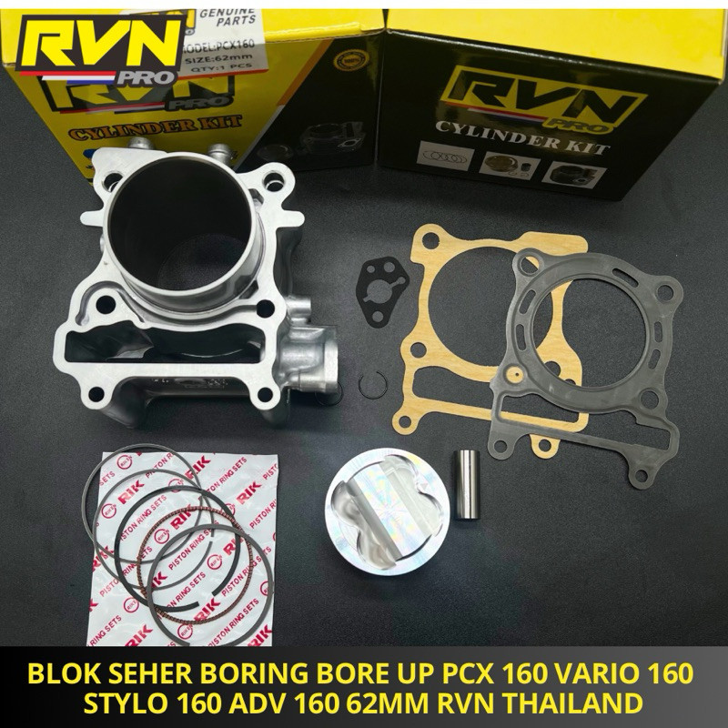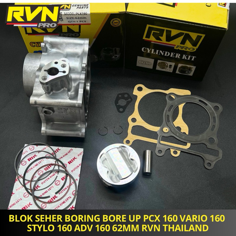RVN CYLINDER BLOK SEHER BORING KOMPLIT BORE UP PCX 160 VARIO 160 STYLO 160 ADV 160 62MM 62 MM BLOCK SEHER BORUP FREE PAK