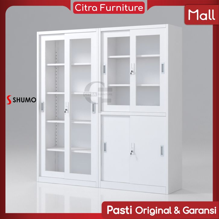 Citra Furniture SHUMO Lemari Arsip Besi 4 Pintu Sliding Kaca White Nevada Series