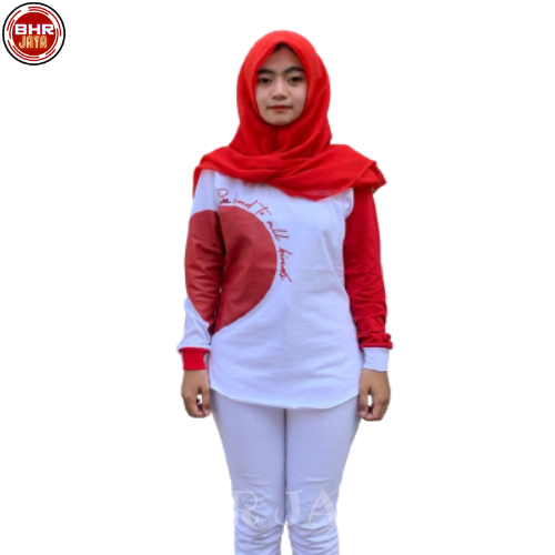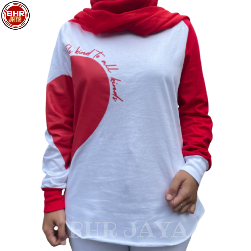 Kaos Wanita Lengan Panjang Warna Merah Putih Love // Kaos Wanita Tangan Panjang Merah Putih Love Azira Size M/L/XL/XXL/XXXL