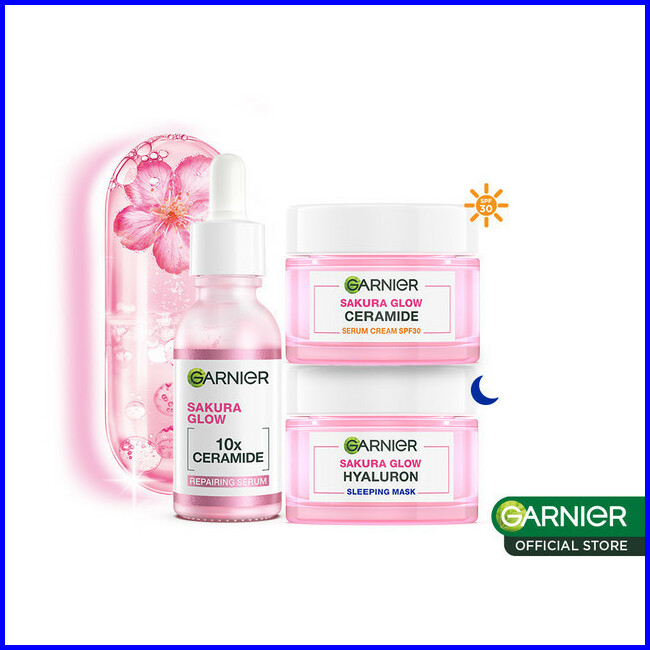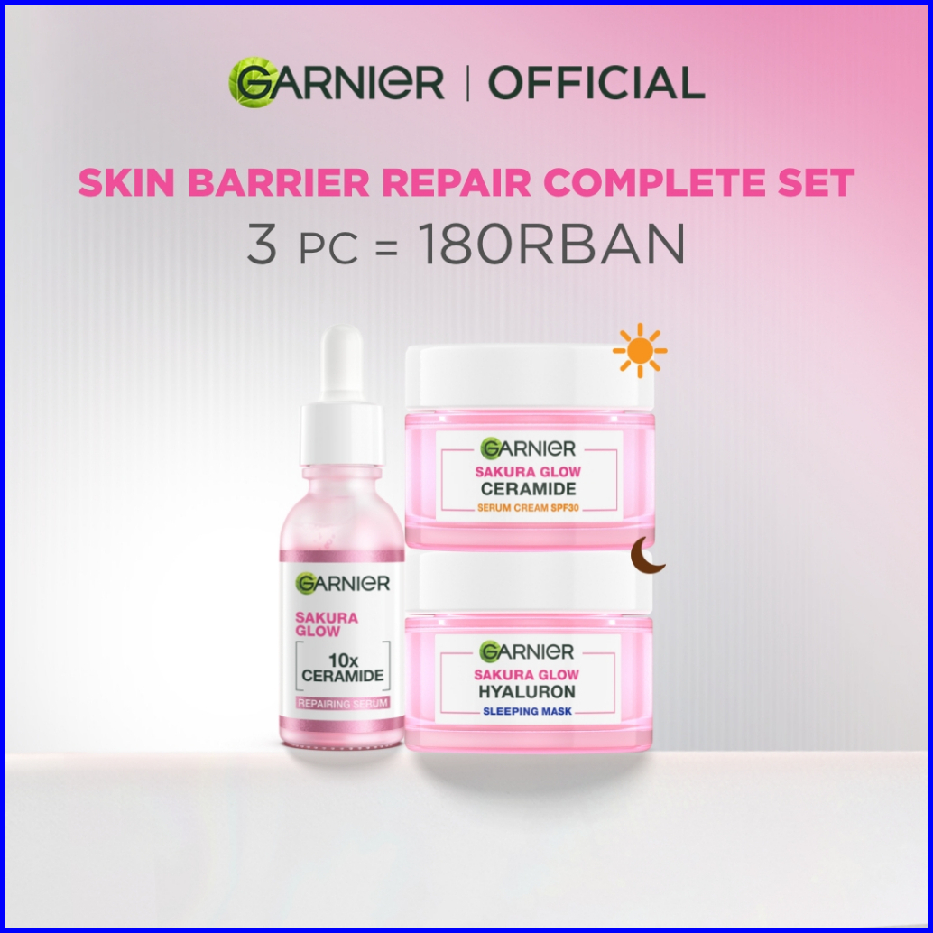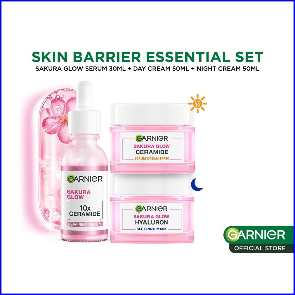 Paket Skincare Garnier Sakura Glow Skin Barrier Daily Set Untuk Glowing Perbaiki Skin Barrier Sehari-hari Serum Hydratio