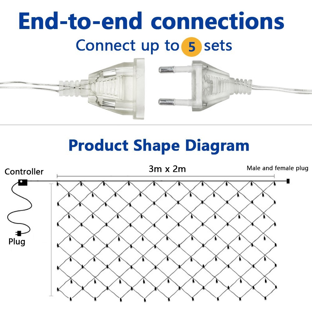 Lampu LED Jaring 3m x 2m Lampu Tirai Natal Jala LED Net Light Lampu Jaring Outdoor Waterproof Lampu Hias 17 Agustus lampu hias merah putih 17 agustusan Kelap Kelip Dekorasi Natal Taman Rumah Gereja