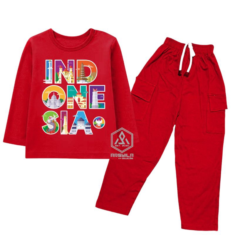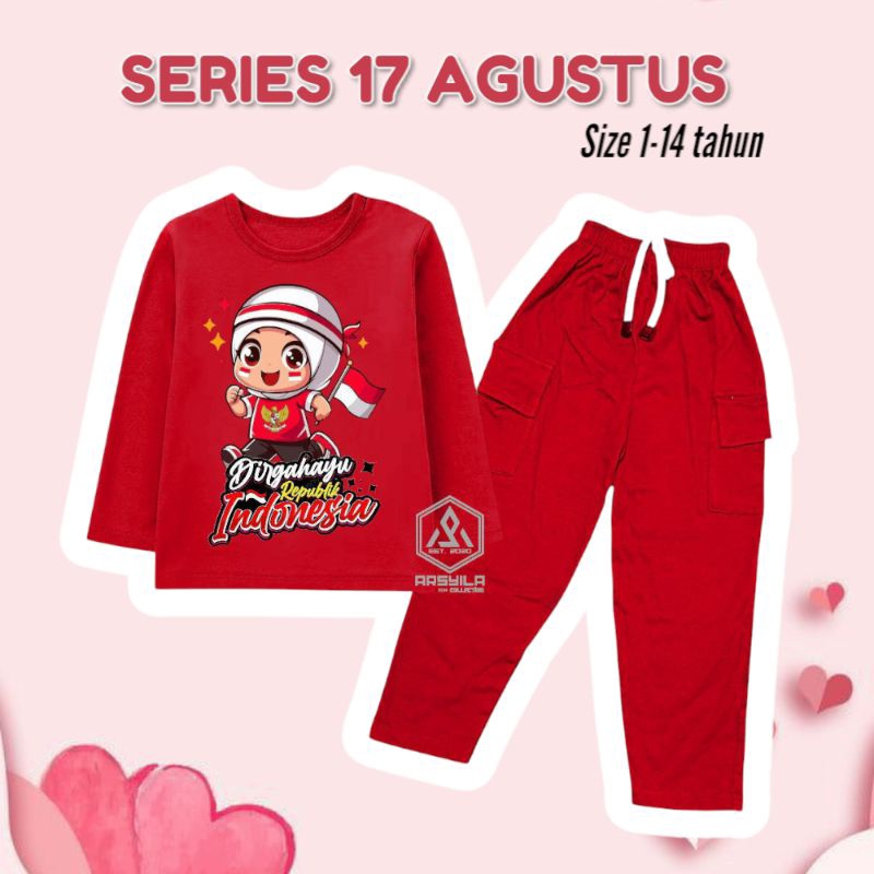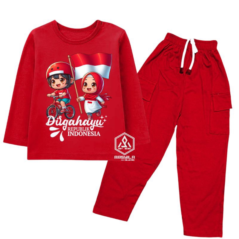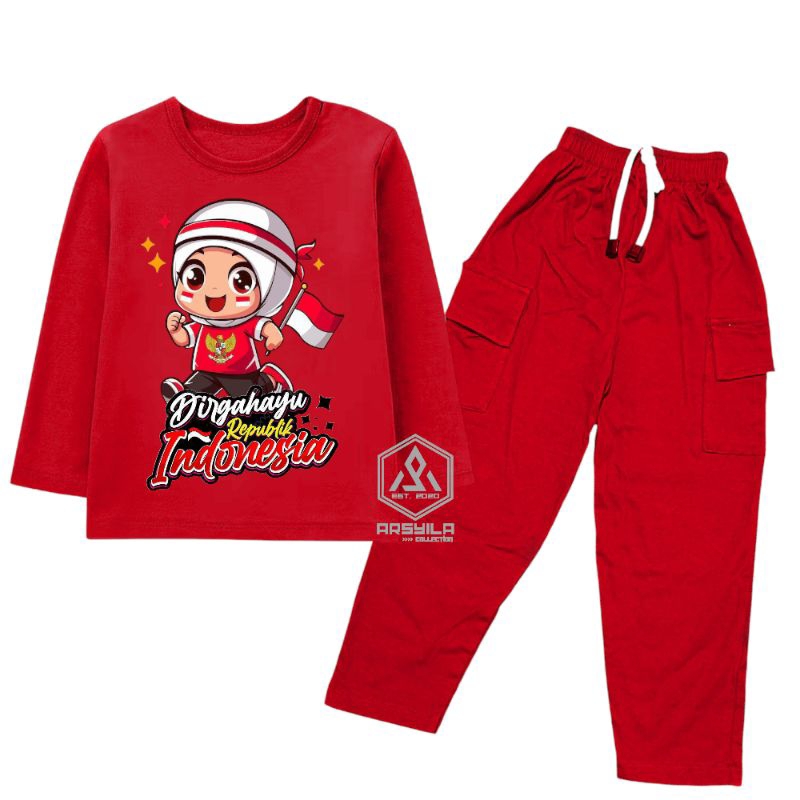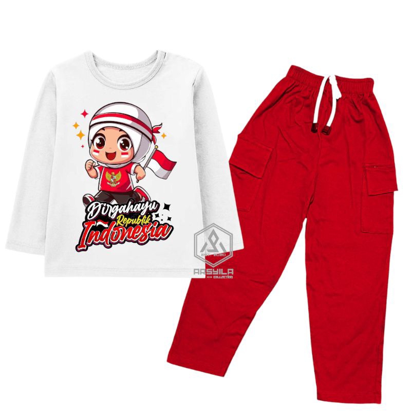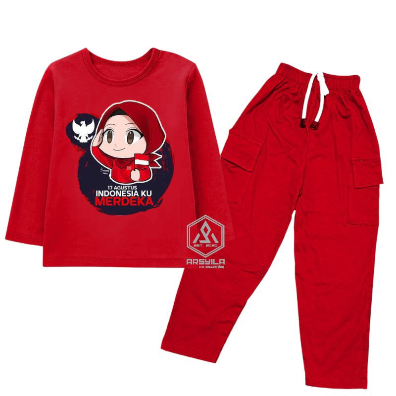 Setelan Anak Kemerdekaan Lengan Panjang Celana Panjang Usia 1-11 tahun - Baju 17 Agustus Anak Perempuan Lengan Panjang Bahan Combed