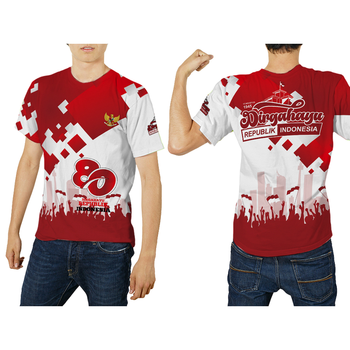 kaos atasan pria baju 17 AGUSTUS HUT RI ke 80 Thn Fullprinting 3D terbaru dan termurah art 5