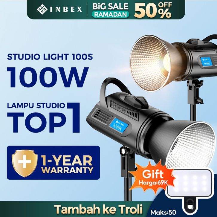 INBEX 100S Lampu 100W Lighting Studio Softbox Cahaya Live Streaming Pembuatan konten Studio Ring Light Tripod Mini