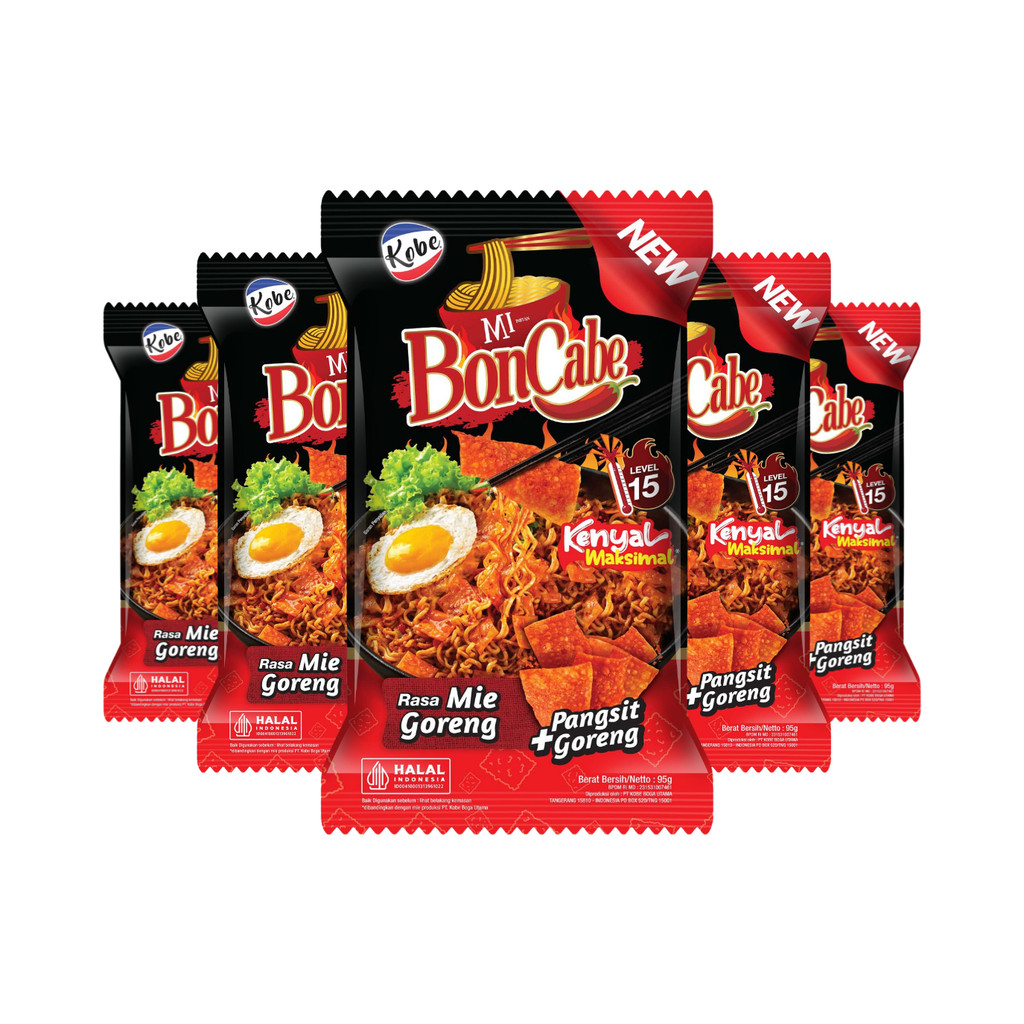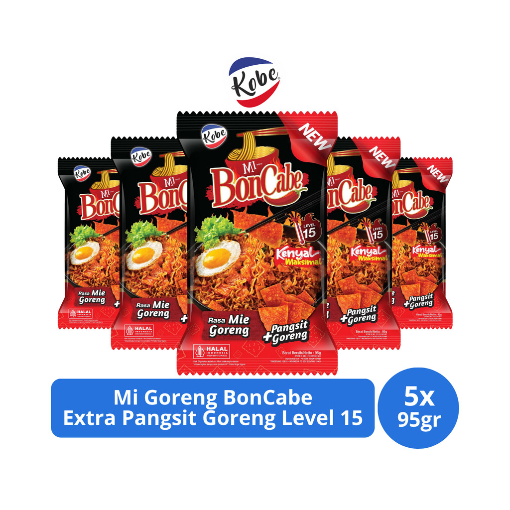 Kobe BonCabe Mi Goreng Extra Pangsit Goreng Level 15 95gr x 5 pcs