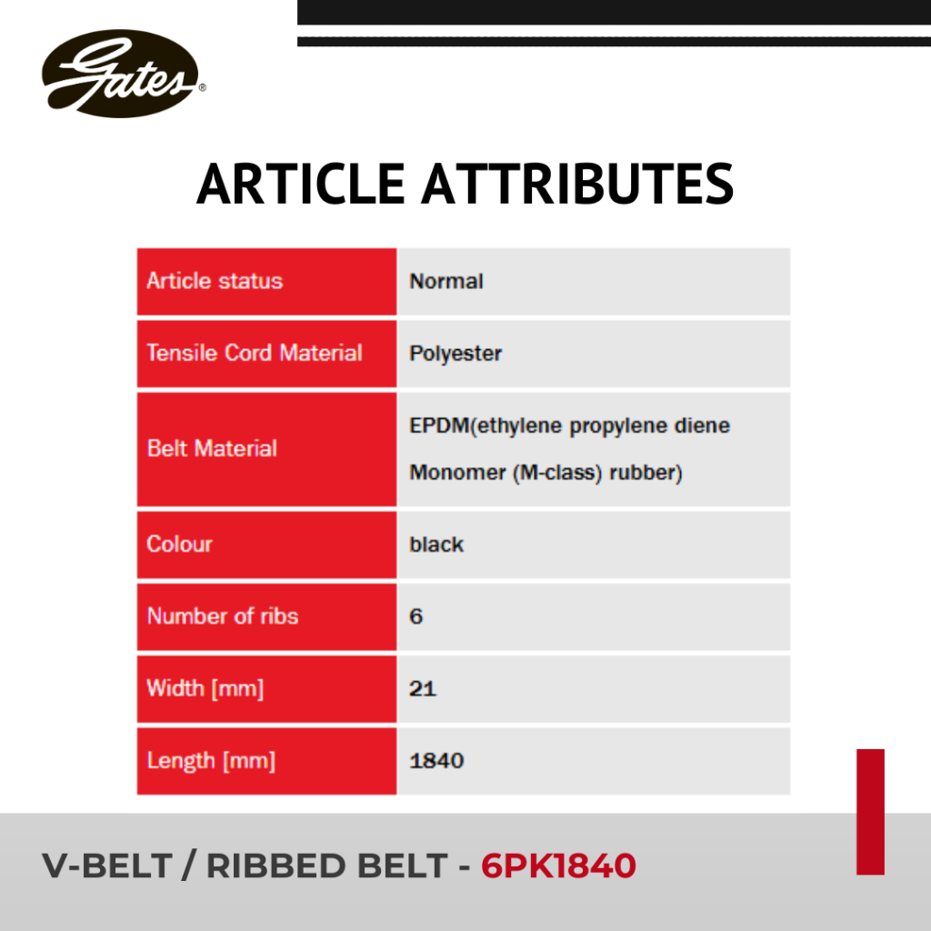 Gates V Belt MAZDA 2 1.5L DE14/DH13 | ZY05 (2007-2015) V-Belt 6PK1840 Van Belt Mobil