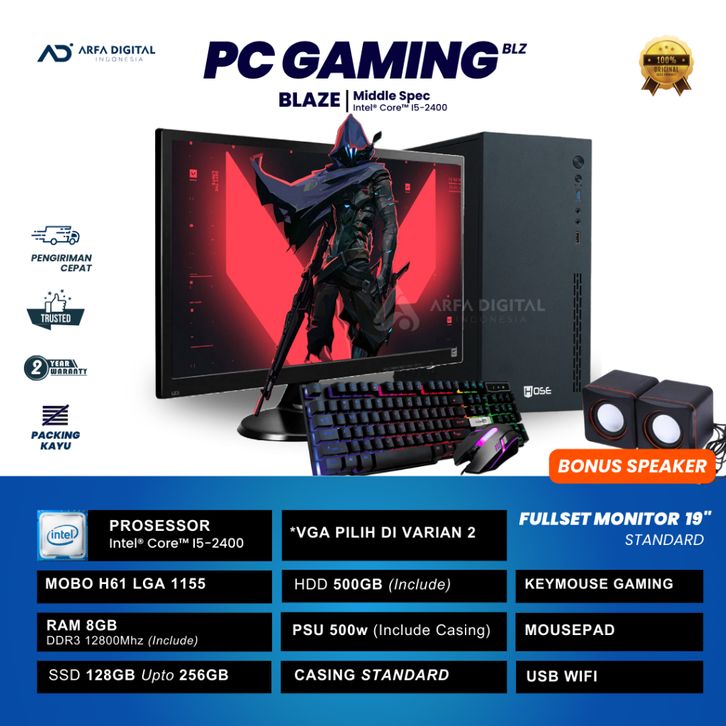 Pc Gaming Fullsett Core i5 HDD 500GB RAM 8GB VGA 2GB DDR5 Monitor LED 19Inch Pc Fullsett Siap Pakai