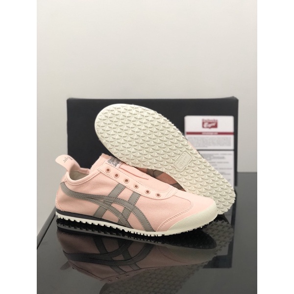 Sepatu Onitsuka Slip On Pink Grey Free Paperbag