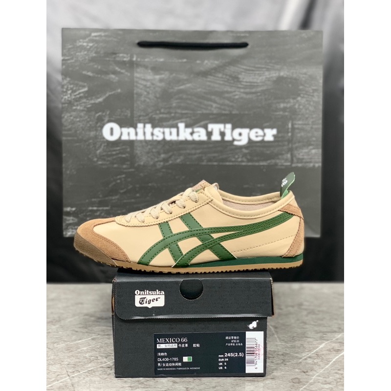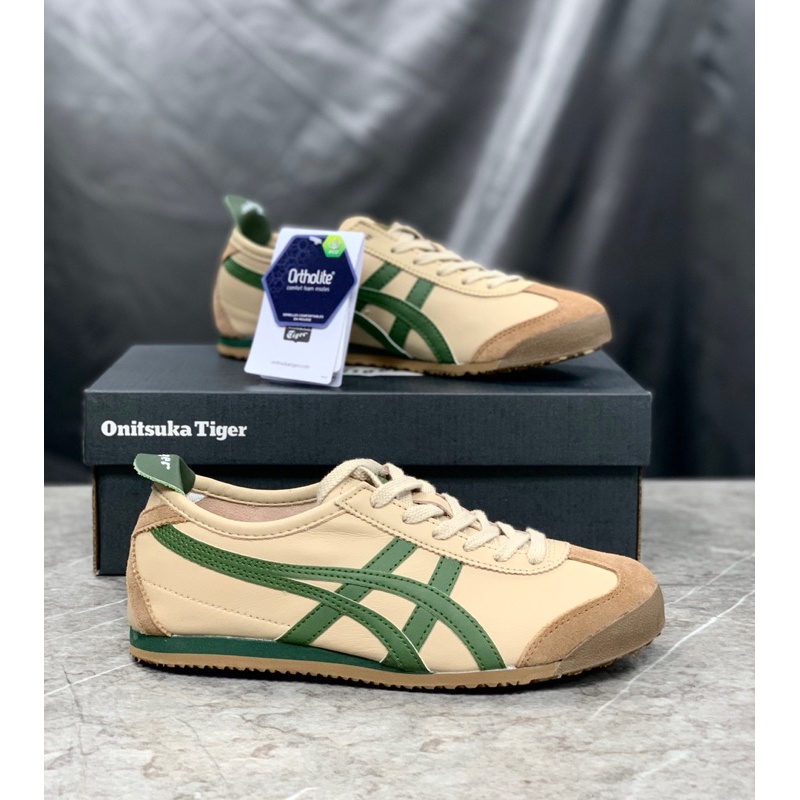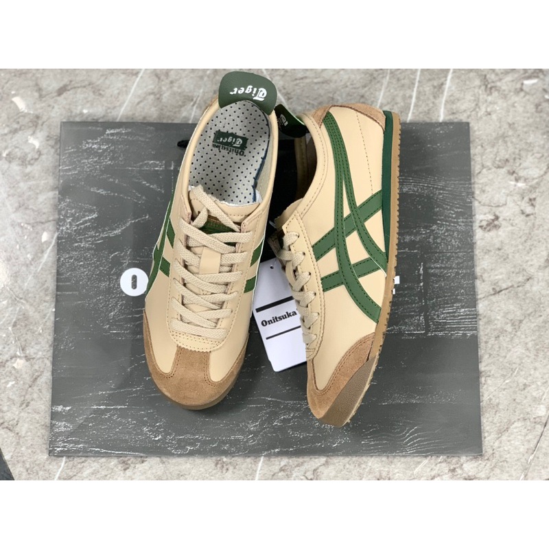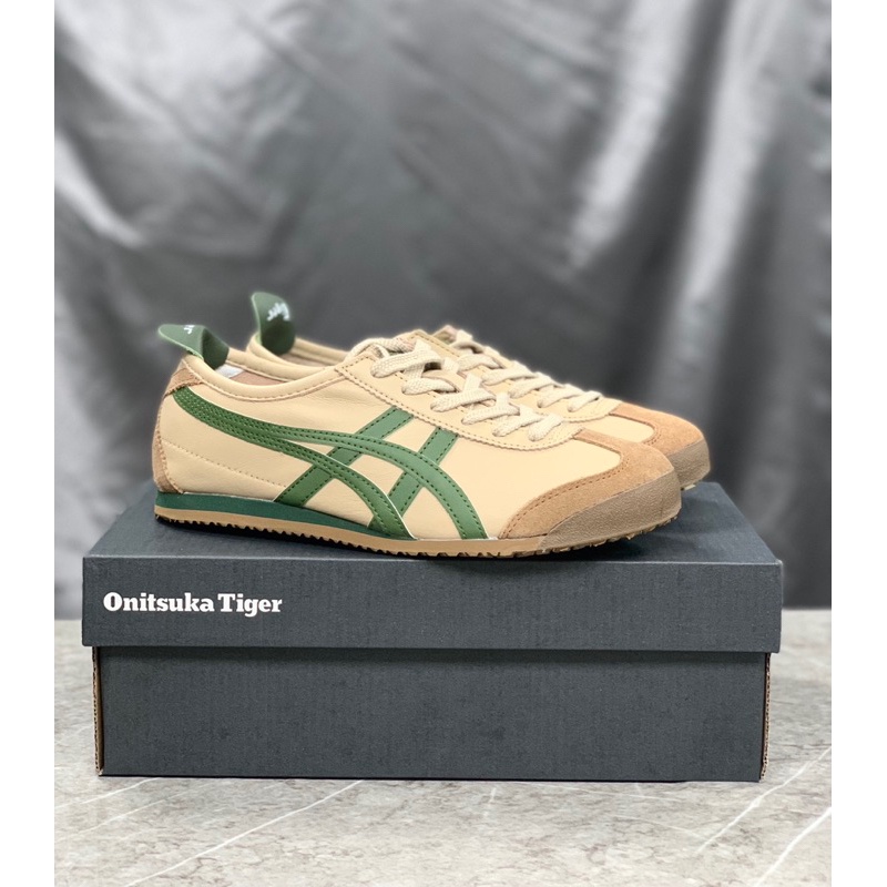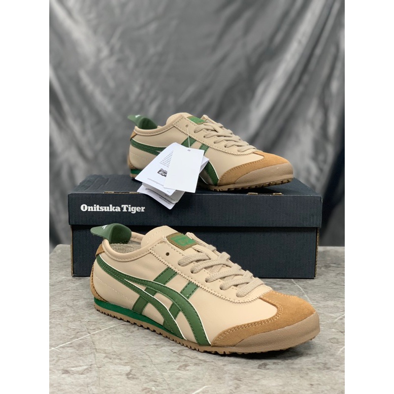 Sepatu Onitsuka Mexico 66 Beige Green Kulit Stylish