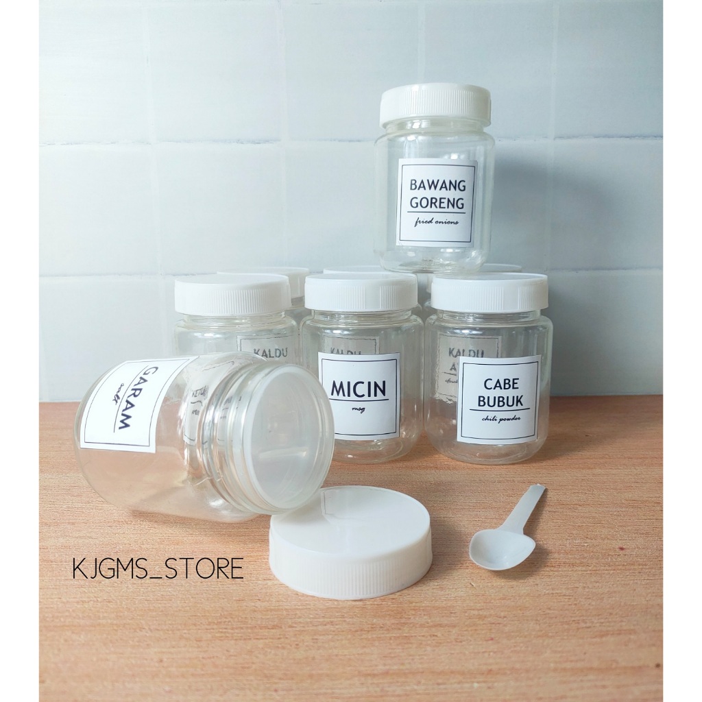 Toples Bulat Wadah Bumbu Dapur Aesthetic 200 Ml Free Sendok Dan Bubble