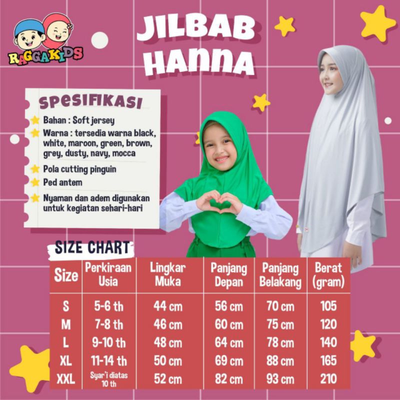 Jilbab Instan Anak Remaja Hanna Hijab Syar'i Bahan Soft Jersey Ped Antem Raggakids
