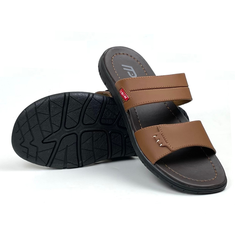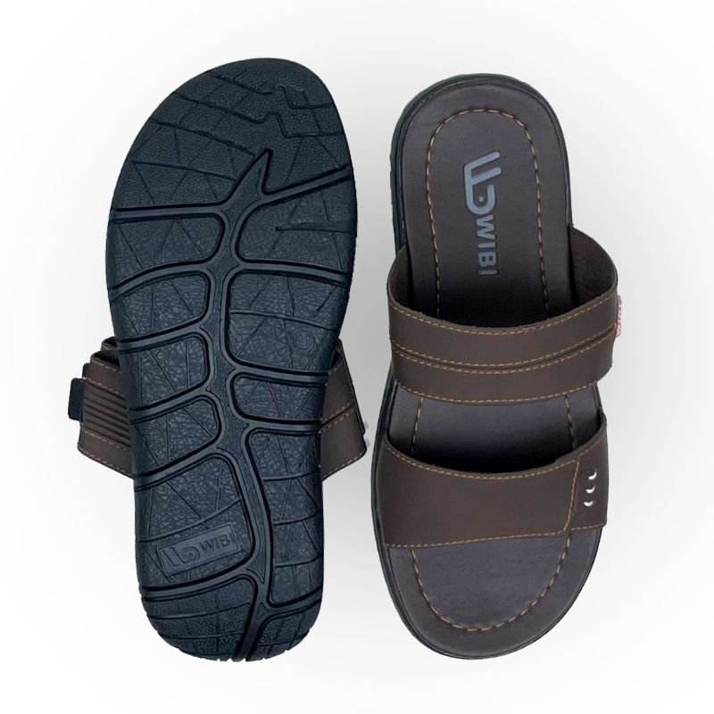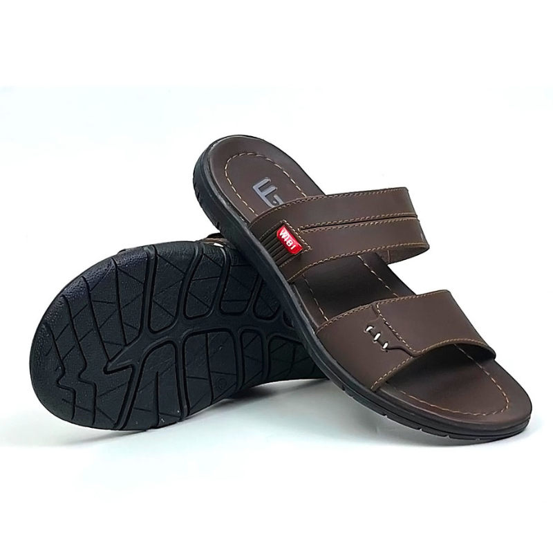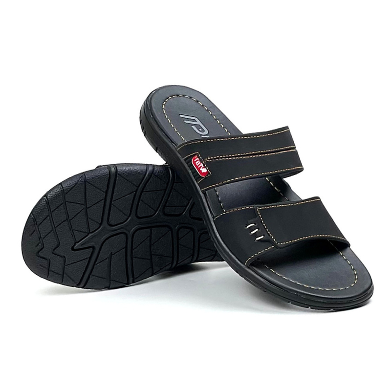 Sendal Slop Kulit Pria Dewasa Original Cowok Casual Hitam Premium Murah Keren Terlaris Bkn Jepit Carvil