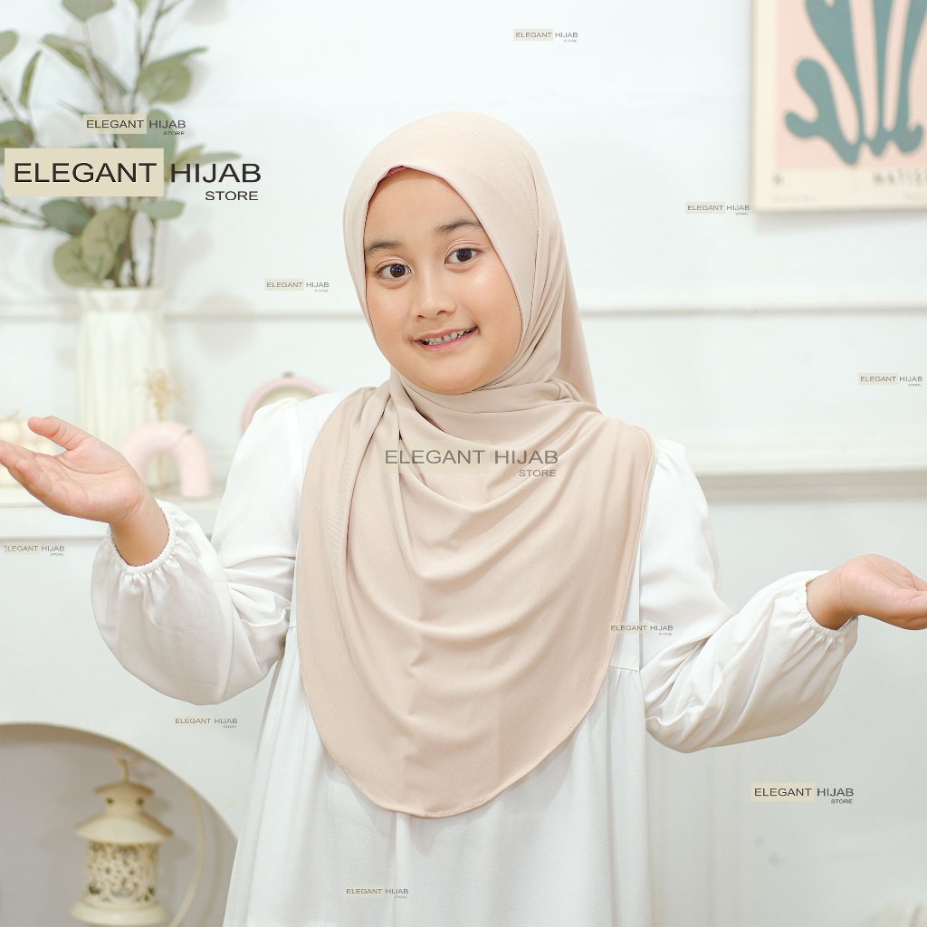 Hijab Instan Jiisoo Anak Sekolah TK I Kerudung Instan Shireen Anak I Jilbab Anak Oval Putar Syar'I Jersey Umur 4 - 8 Tah