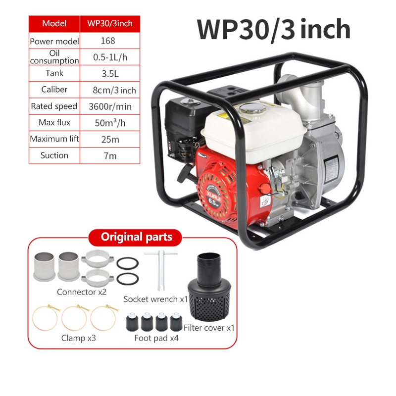 Water Pump Bensin Pompa Self-priming 7HP Pompa Air Pertanian Daya Tinggi 2-tak Pompa Air Udara Bensin Terbaru Terlaris