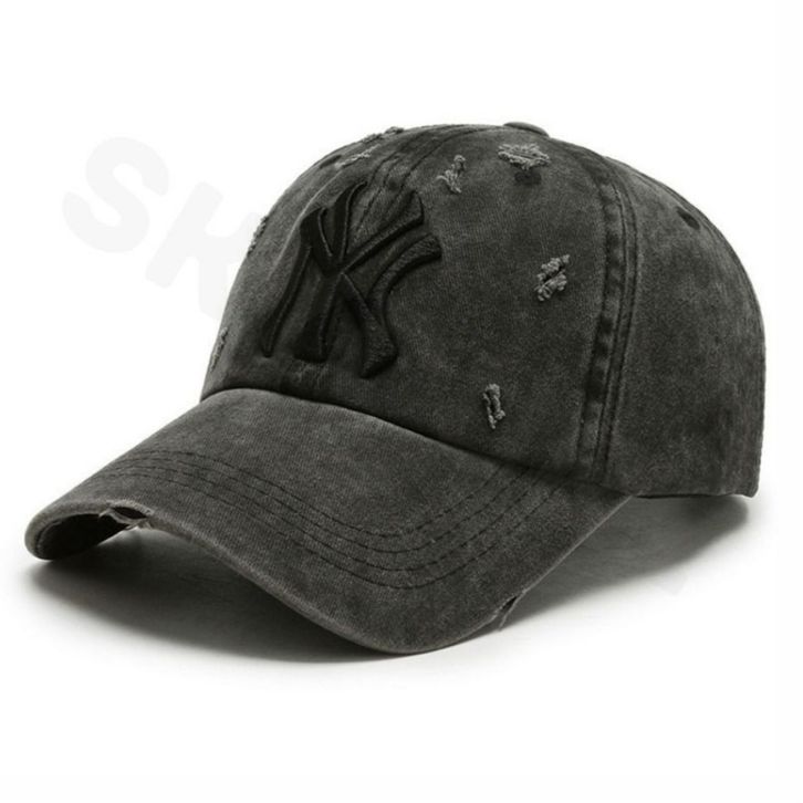 EKSKLUSIF Topi Baseball Model Robek Full Wash Denim Motif NY Terbaru Fashion Pria Wanita edibc