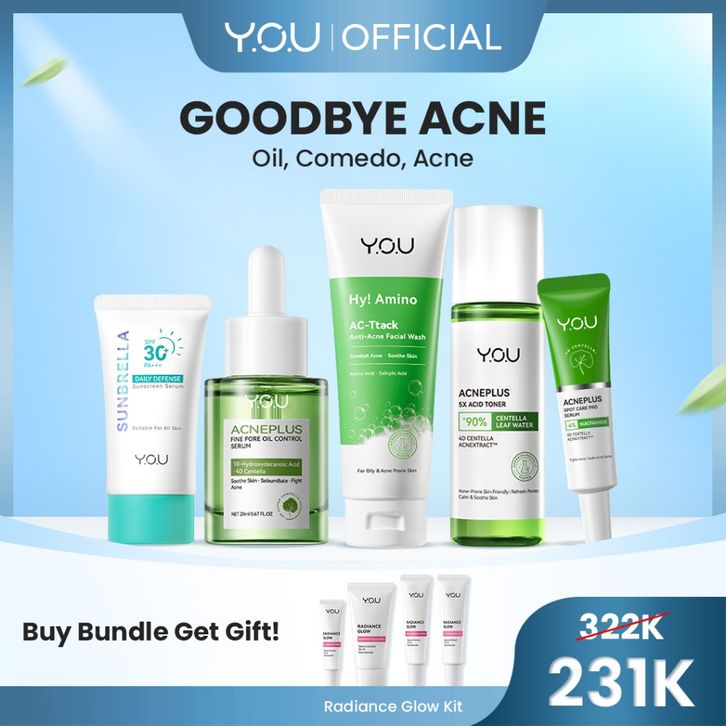 YOU 5in1 Paket Skincare Set 5pcs Radiance Glow, Radiance Up, Acneplus, Peeling Serum, Retinol, Sunbrella