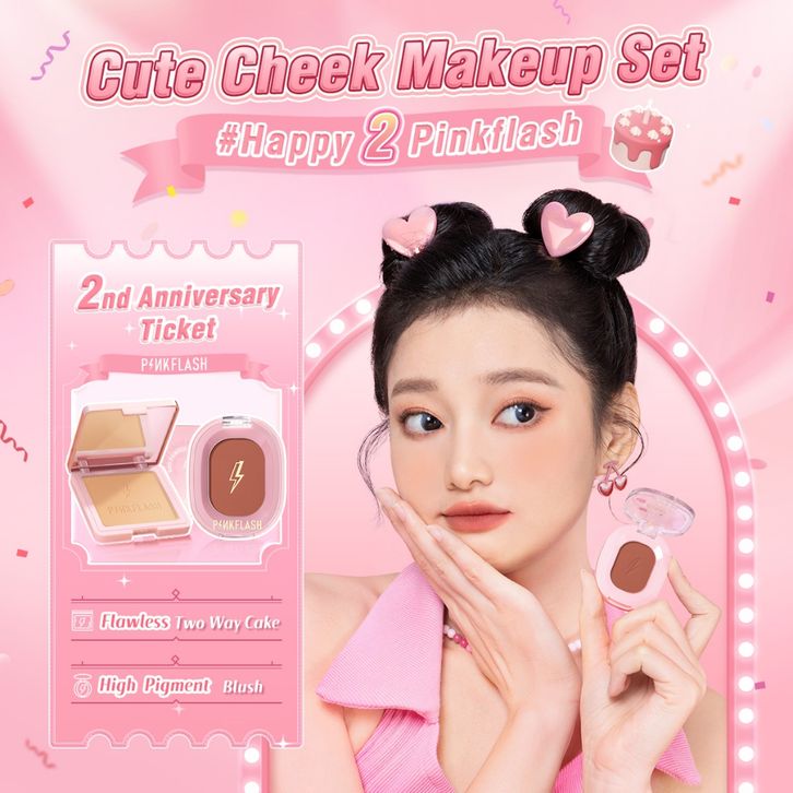 PINKFLASH Happy2Pinkflash 2 Anniversary Full Makeup Set All Skin Type Face Eyes Lips Beauty Set Eyeshadow Eyeliner Lips