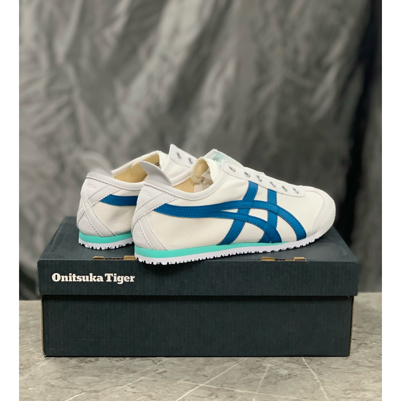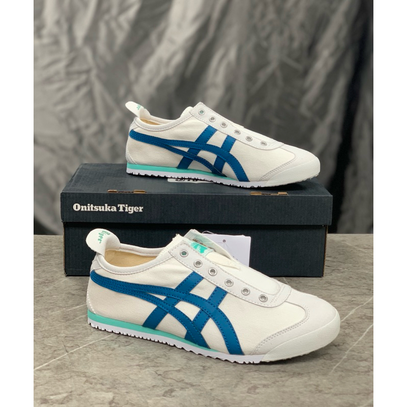 Sepatu Onitsuka Slip On Kanvas White Blue Toska
