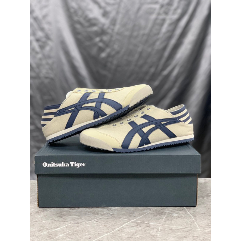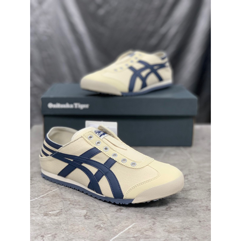 Sepatu Onitsuka Slip On Paraty Cream Navy Kanvas Elegan