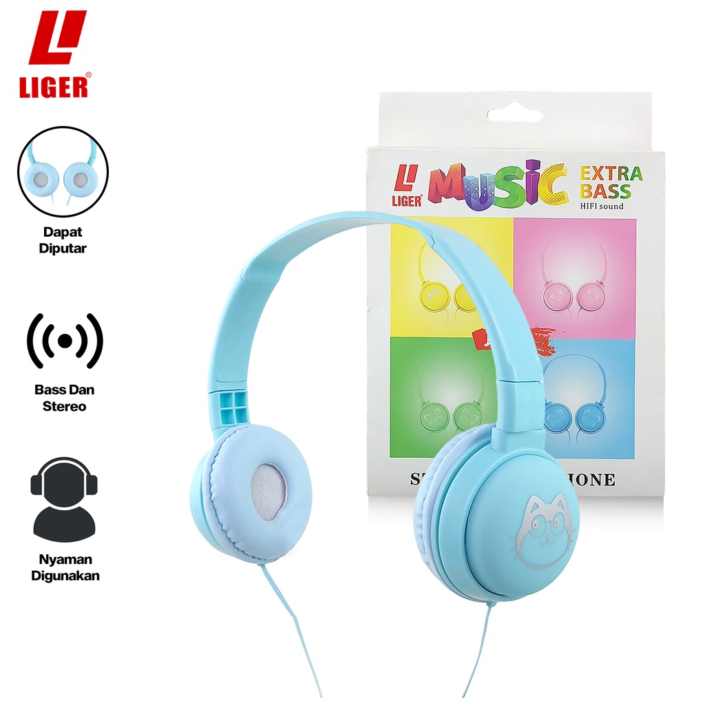 LIGER Headphone / Headset Macaron Cartoon Dengan Mic J-18 Extra Bass Stereo Headset Kucing HF-J18