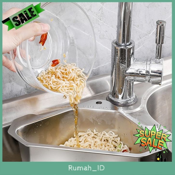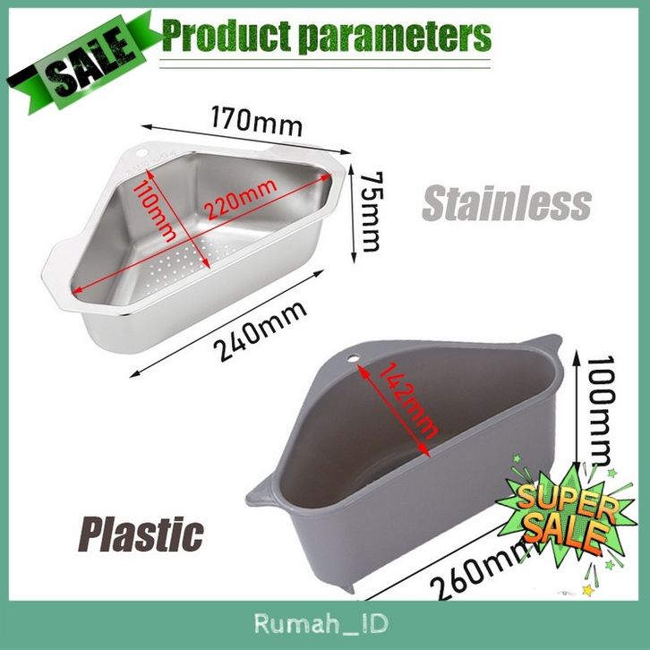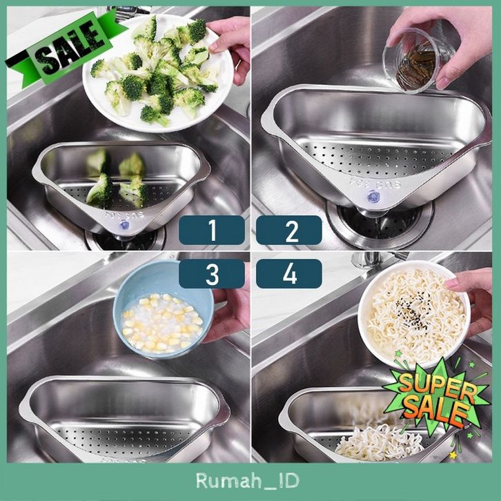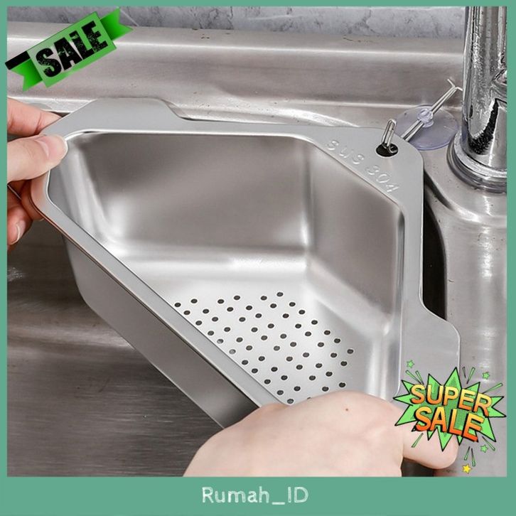 Rak Saringan Sudut Wastafel Segitiga Cuci Piring Stainless Tempat Spon Sabun Cuci Piring Dapur Multifungsi