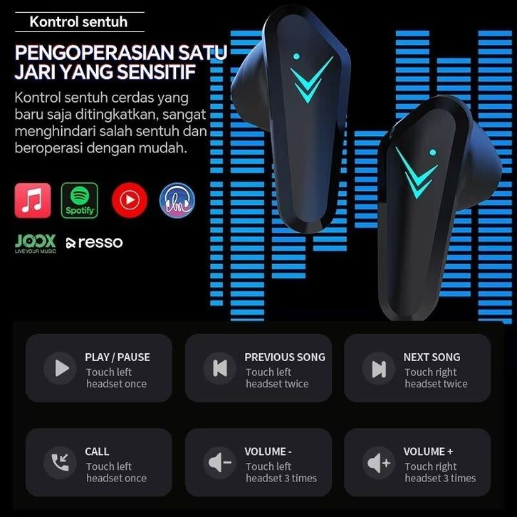 Headset Bluetooth 5.3 Earbud TWS Nirkabel LED Digital Power Display Stereo with 5000 mAh Powerbank