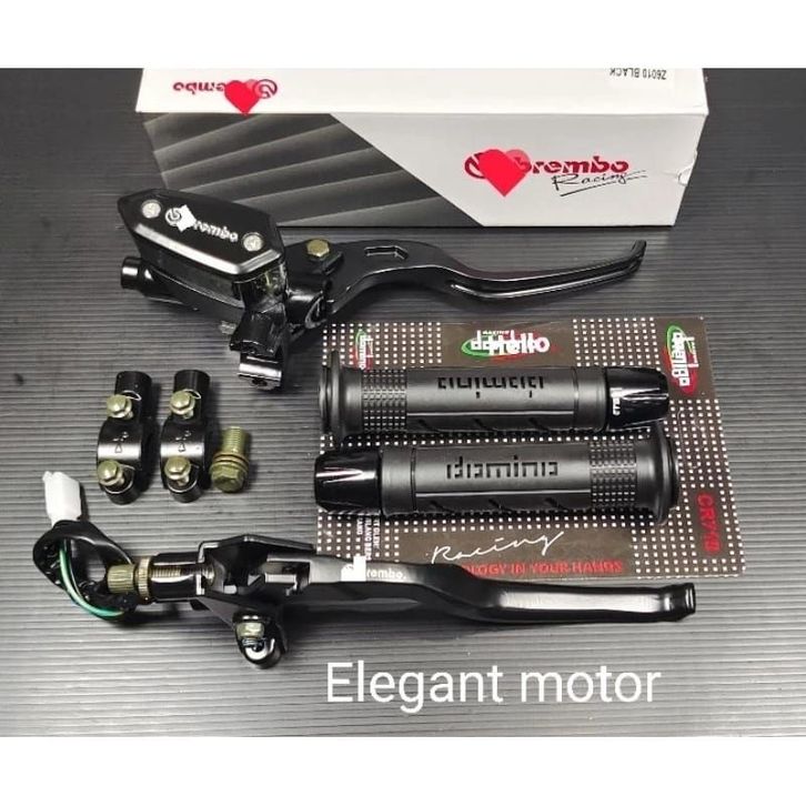 Paket 3IN1 Master Rem Tabung Oval + Handgrip Sisik + Jalu Stang CNC Universal