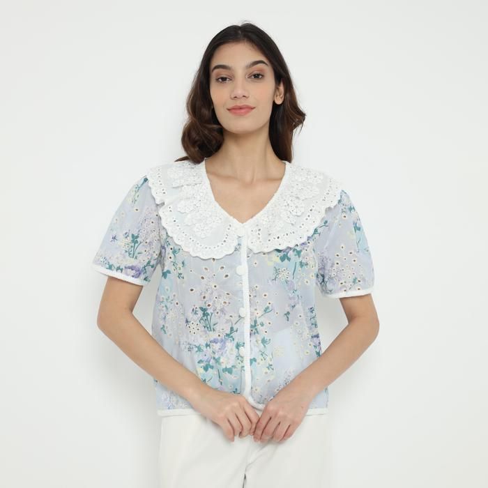 duapola Kemeja Katbol Bunga Kerah Renda 9779 - Ungu