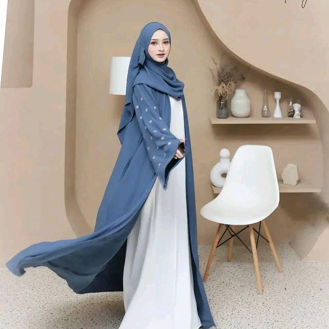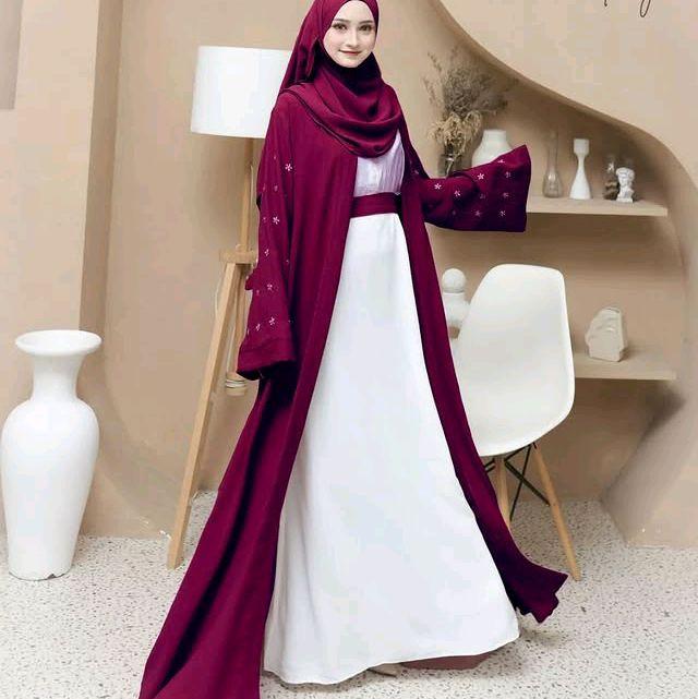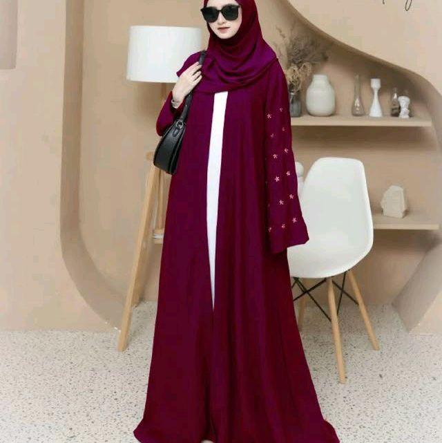 Muslimfashion - Jameela Abaya Outer Plus Inner Crinkle Mix Bordir Baju Lebaran Wanita Terbaru 2025 Gamis Dewasa Mewah