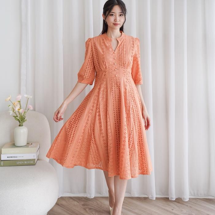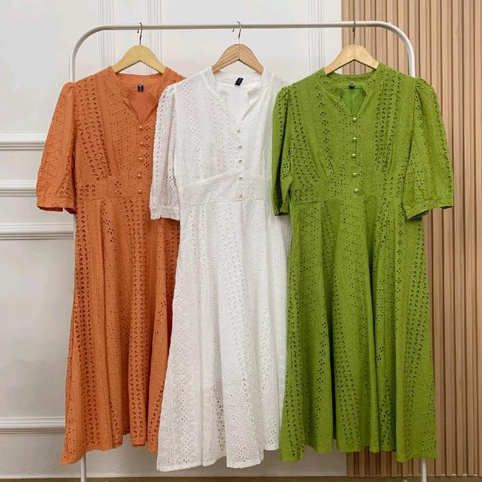 Keikoclothing - Felisa Dress - Cotton eyelet wanita katbol santai jalan pesta kecil Casual Samping