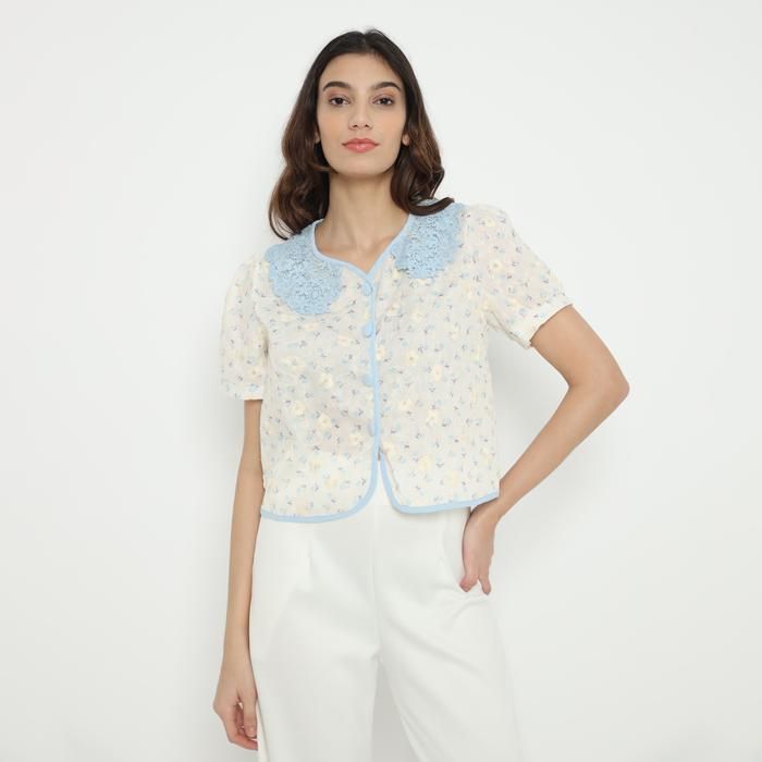 duapola Kemeja Katbol Bunga Kecil Renda 9799 - Biru