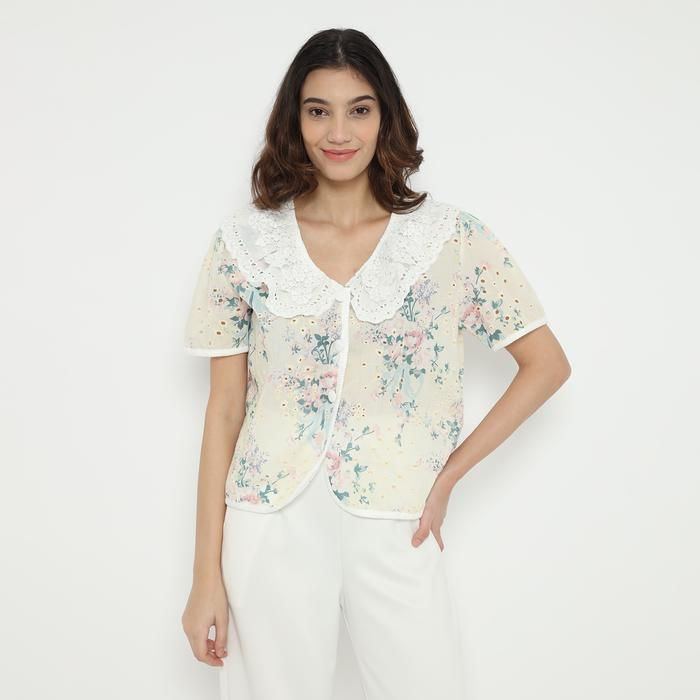 duapola Kemeja Katbol Bunga Kerah Renda 9779 - Cream