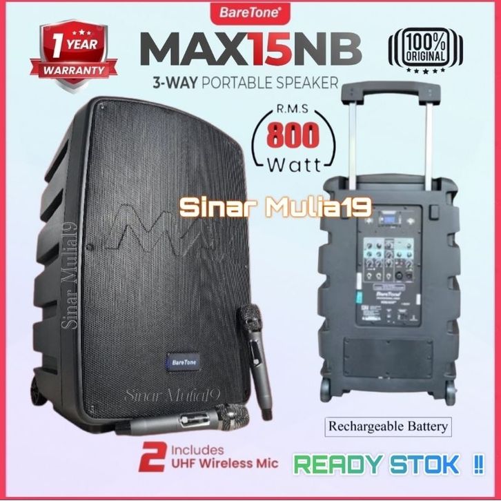 BareTone MAX15NB Speaker 15 Inch Portable Terbaik RMS 800 Watt ( New .el ) Fitur Komplit
