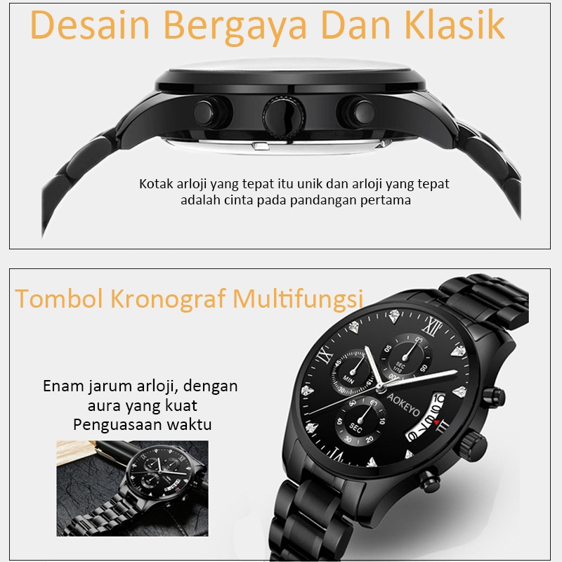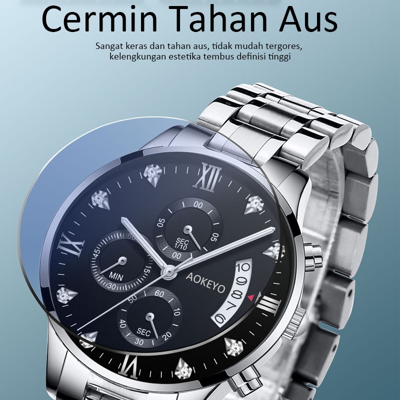 Jam Tangan【TERMURAH】AOKEYO 5080 Pria Anti Air Original Luxury Stainless Steel (Free BOX+Kartu Garansi)