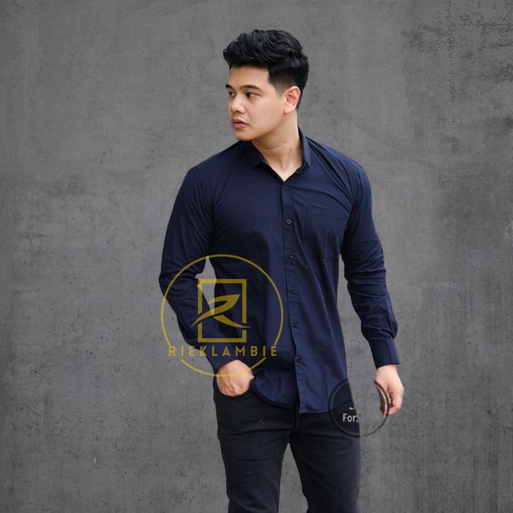 (Gratis Ongkir) KEMEJA POLOS PRIA LENGAN PANJANG SOFT BLUE CASUAL