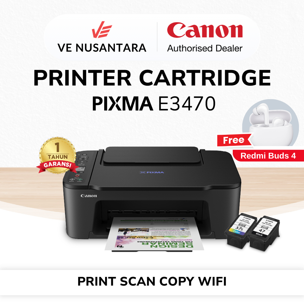 Printer Inkjet CANON PIXMA E3470 - Print Scan Copy Wifi - Printer Cartridge Multifungsi - Printer Rumah