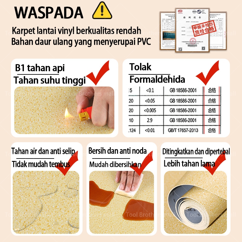 Reaim Karpet Lantai Vinyl Roll Tebal 1.5mm per Lebar 2m Panjang 10m aesthetic Gulungan Motif Kayu Ukuran GULUNGAN TEBAL