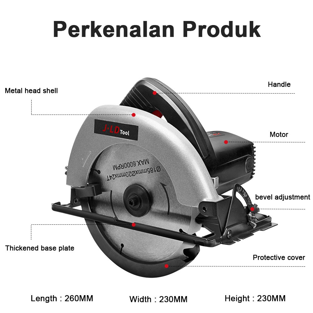 JLD 7inch Mesin Gergaji Circular Saw 900W Sircular Saw J1857 Mesin Potong Pemotong Keramik 220V potong kayu Heavy Duty b