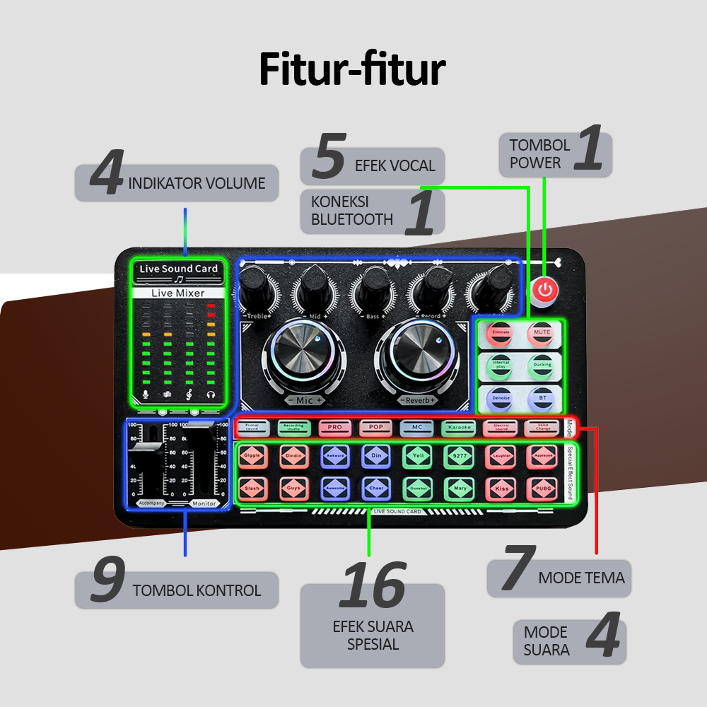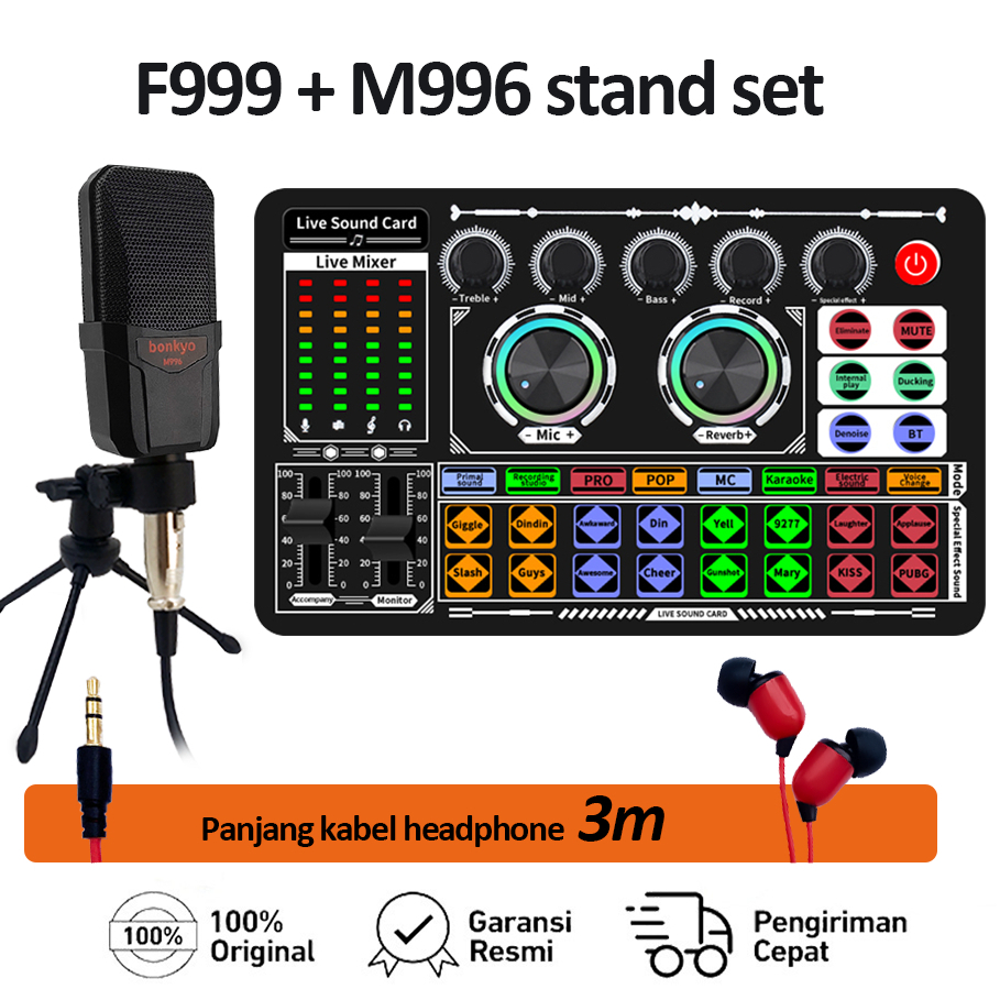 F999 SoundCard Bluetooth compatible External Wireless DJ Mixer Pengurangan Kebisingan untuk Streaming Langsung