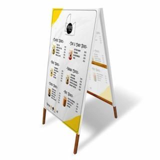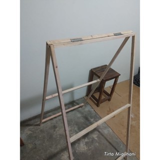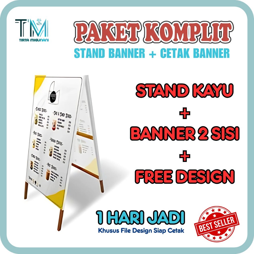 STAND BANNER KAYU 2 SISI SISTEM LIPAT ENGSEL + CETAK BANNER / SPANDUK 2 SISI FREE DESIGN