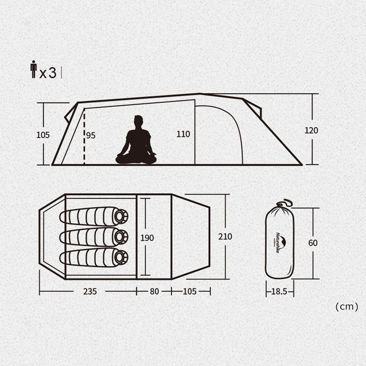Naturehike Tenda Hiking Opalus 3 Orang 20D NH20ZP001 Tenda Camping