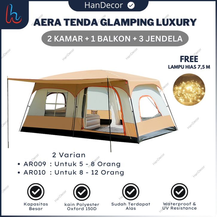 Tenda Camping Luxury Skylark Kapasitas 5-12 Orang Double Layer Tenda Glamping Waterproof